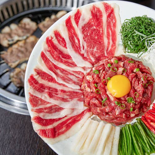 お肉をお寿司みたいなご飯に乗せて食べるのがオススメメニューですが何食べても美味しかったです。